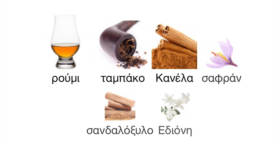 - Νότες: Ρούμι, τομπάκο, κανέλα.