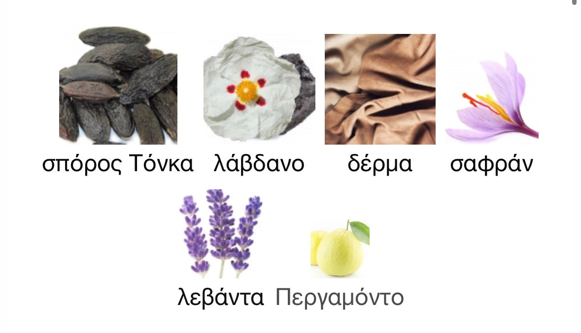 - Ένα γλυκό/κομψό άρωμα με Tonka bean, λάβδανο και δέρμα.
