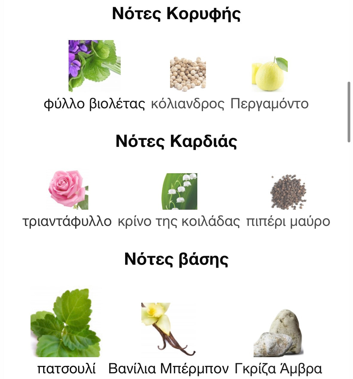 - Ένα γλυκό/κομψό άρωμα με πατσουλί και βανίλια.